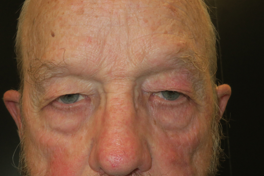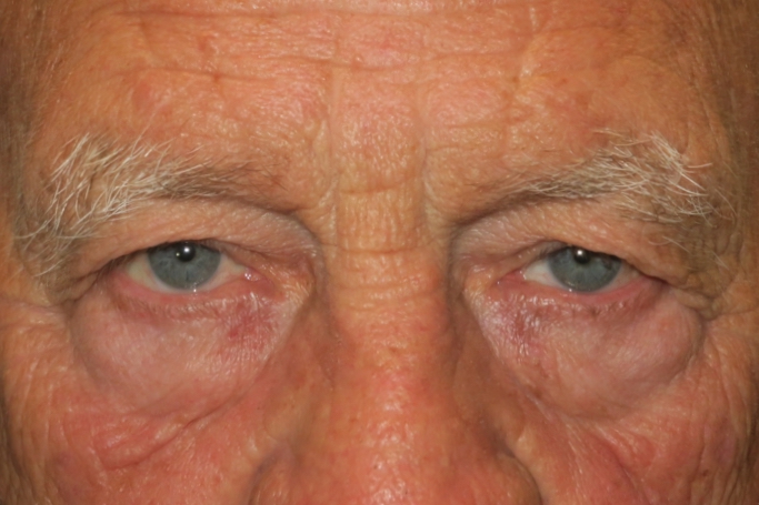 70-year-old Caucasian male. He complained of always seeing shadows in his vision. Procedure: bilateral upper eyelid blepharoplasty. Timeline: 2 months after surgery. Surgeon: Caroline Vargason, MD PhD