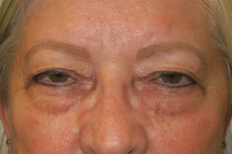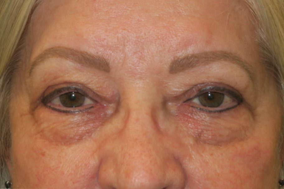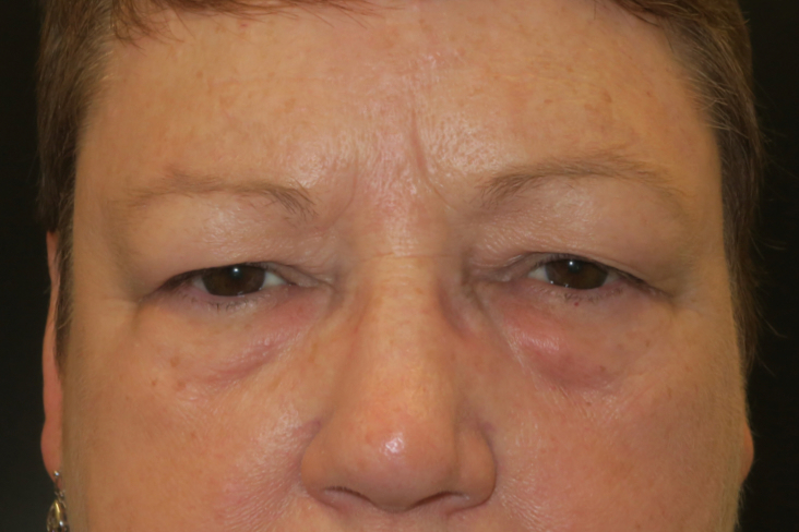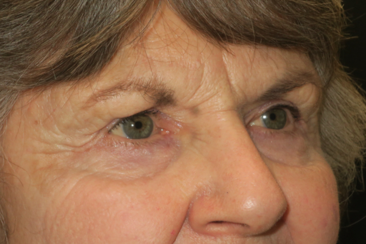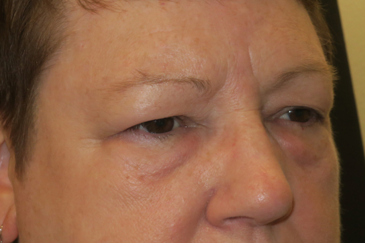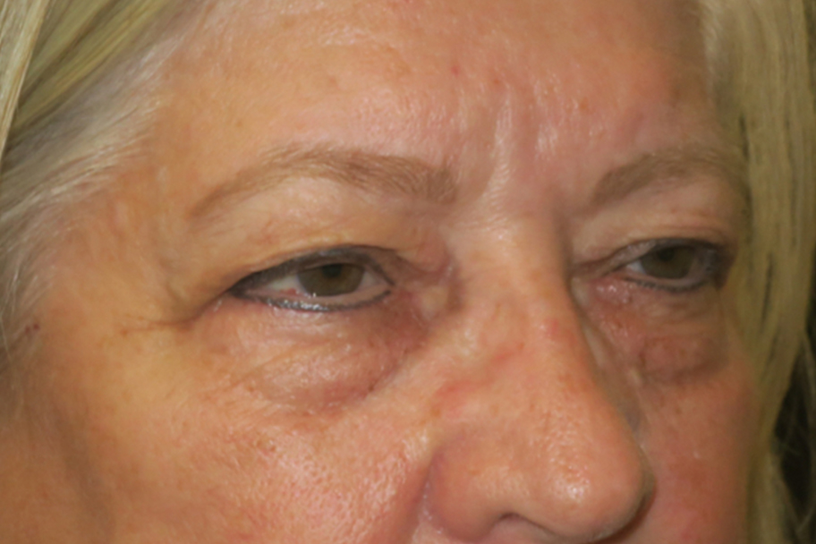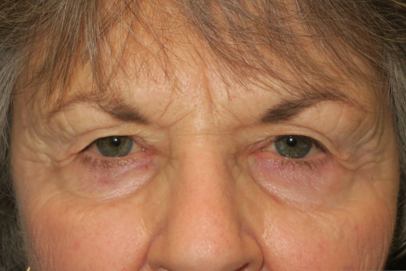 62-year-old Caucasian female. She complained of difficulty seeing the computer screen & a weight on the upper eyelids at the end of the day. She did not like the puffy bags under the eyes.